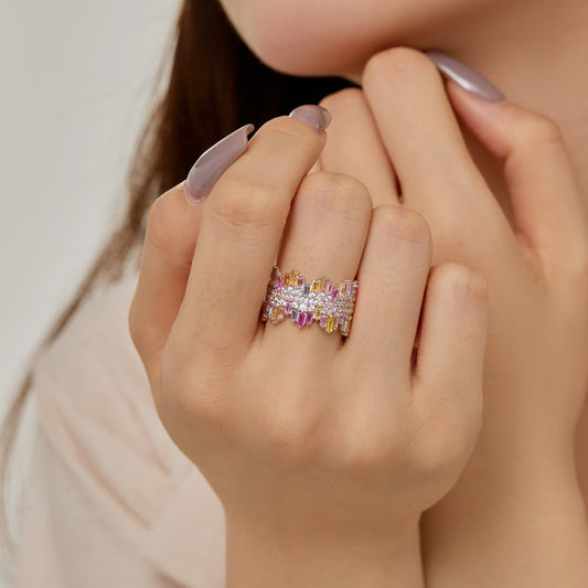 アンジェラジュエリー]生き生きとした色合いのエレガントなラディアントカットデイリーリング